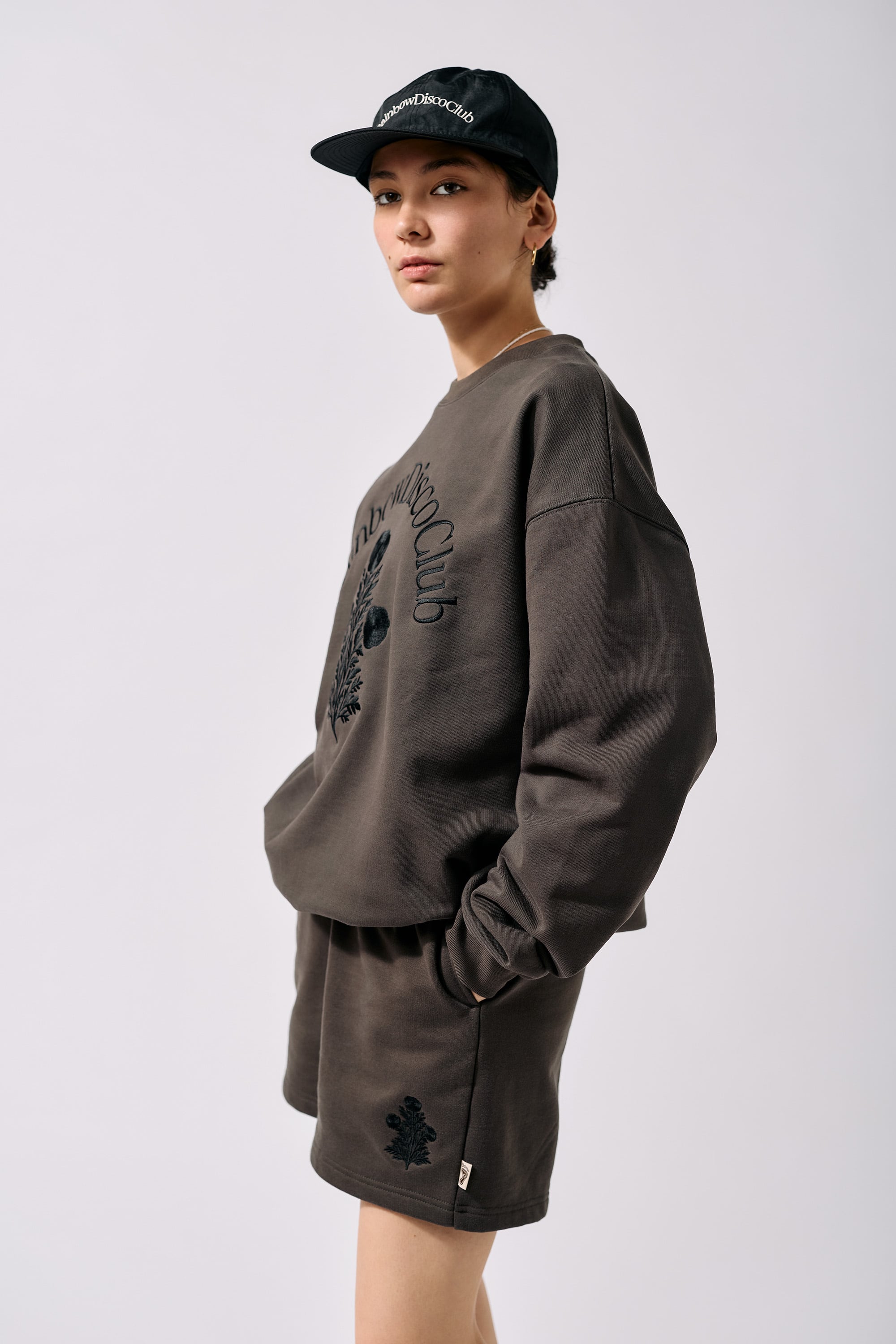 スウェットショーツとのセットアップでの着用がおすすめ。