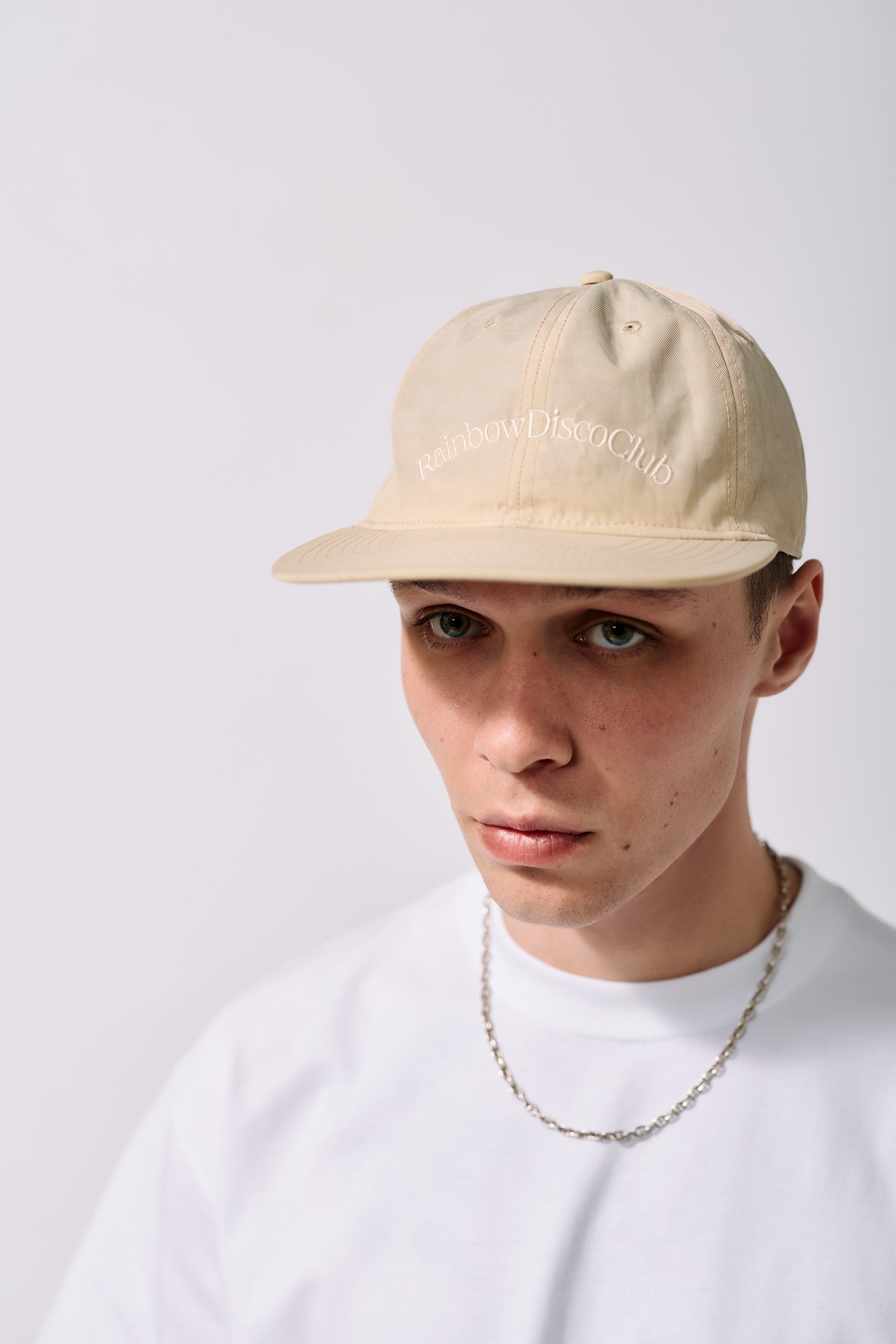 フロントにはRainbow Disco Clubの刺繍、内側には織りネームを施しました。