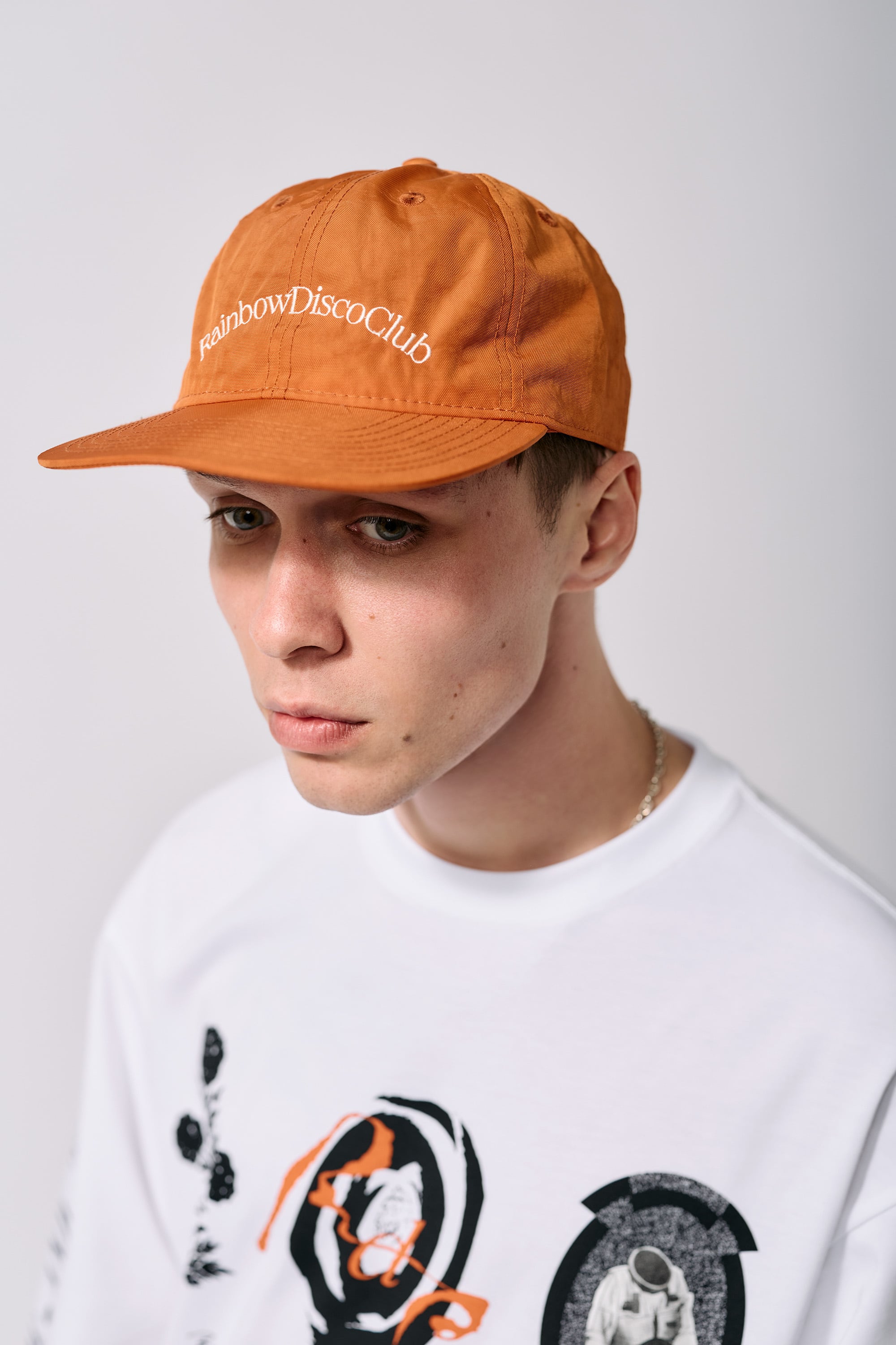 フロントにはRainbow Disco Clubの刺繍、内側には織りネームを施しました。